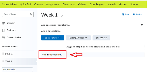 The sub-module is added to your module. You can upload, create, and add existing activities.