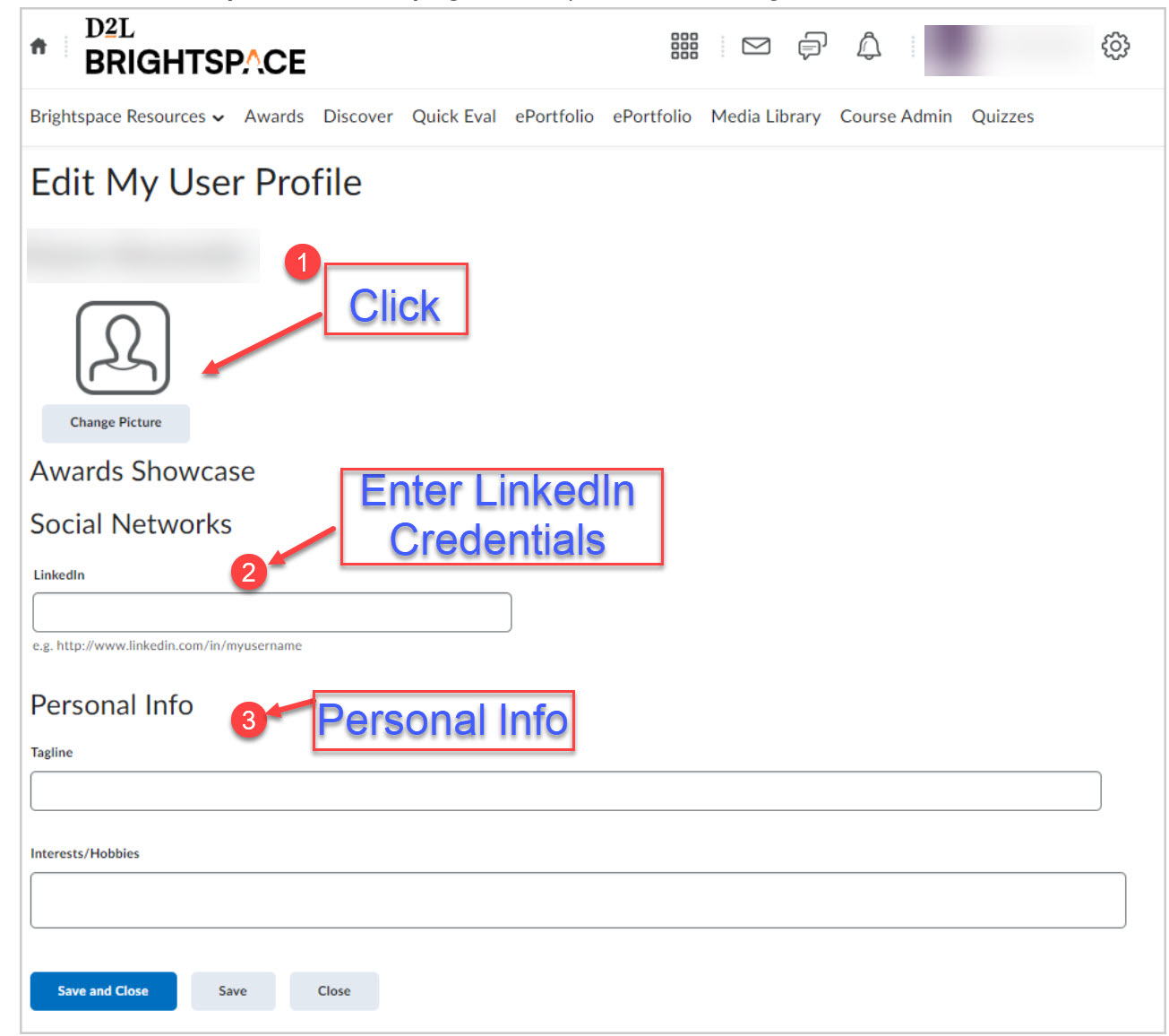 - Your profile picture displays in all your courses in areas such as Discussions and Classlist. If you do not upload a profile picture, the navbar displays your initials in the user-profile badge. This displays in the Brightpsace navbar and Activity Feed.