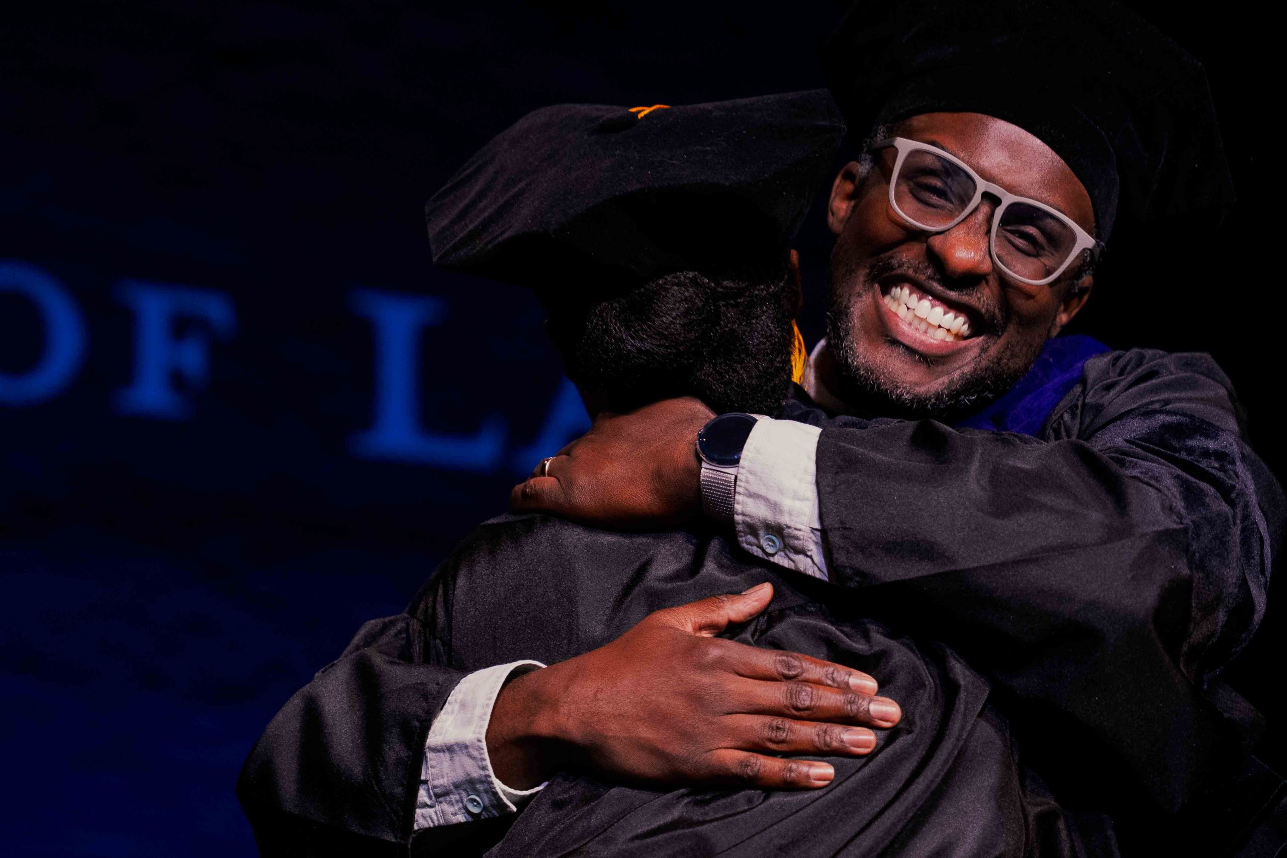 Brodie Enoch and Atiyah Ward, the student-selected speakers representing the evening and day programs, respectively, delivered moving speeches that reflected on their love for the community they had formed while at law school. Enoch also performed with his 5-piece funk-infused alternative rock bank, The L Raisers, in a set that included covers of “Lovesong” by The Cure and, appropriately for a class of new lawyers, Bob Dylan’s “You Gotta Serve Somebody.”