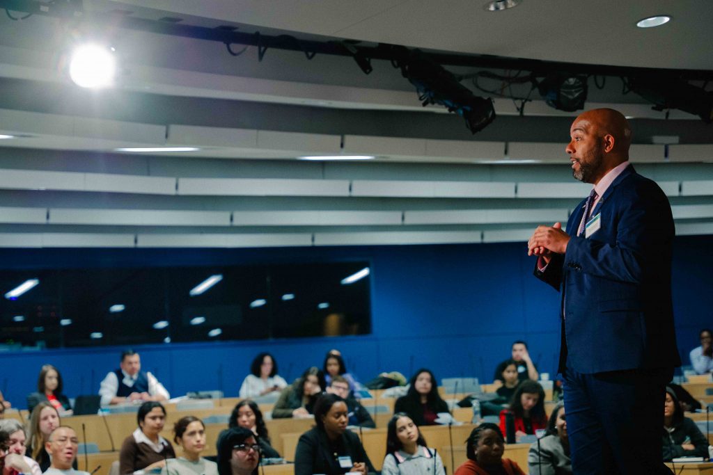 The conference drew participants from all five boroughs to CUNY Law’s Long Island City campus, where they engaged with representatives from 16 law schools, connected with current students and alumni, and attended workshops on topics ranging from LSAT preparation to financial aid strategies.