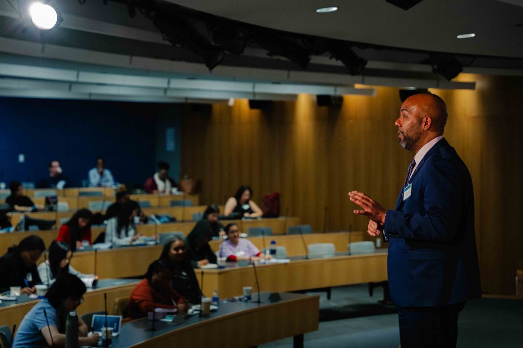 Interim Dean Natalie Gomez-Velez opened the conference with remarks that situated the event within CUNY Law’s broader mission. “The question of who becomes a lawyer is not a small one,” she told attendees. “It is a question about whose voices shape this city’s future.”